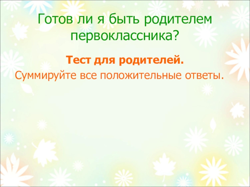 Готов ли я быть родителем первоклассника?Тест для родителей. Суммируйте все положительные ответы.