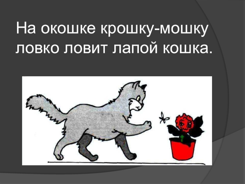 Слайд 8На окошке крошку-мошку ловко ловит лапой кошка.