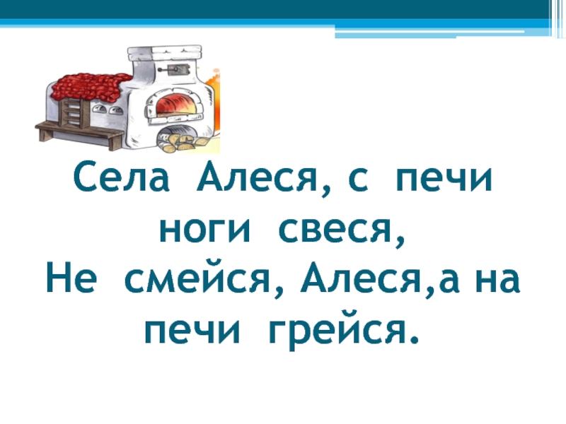 Слайд 24Села Алеся, с печи ноги свеся, Не смейся, Алеся,а на печи грейся.