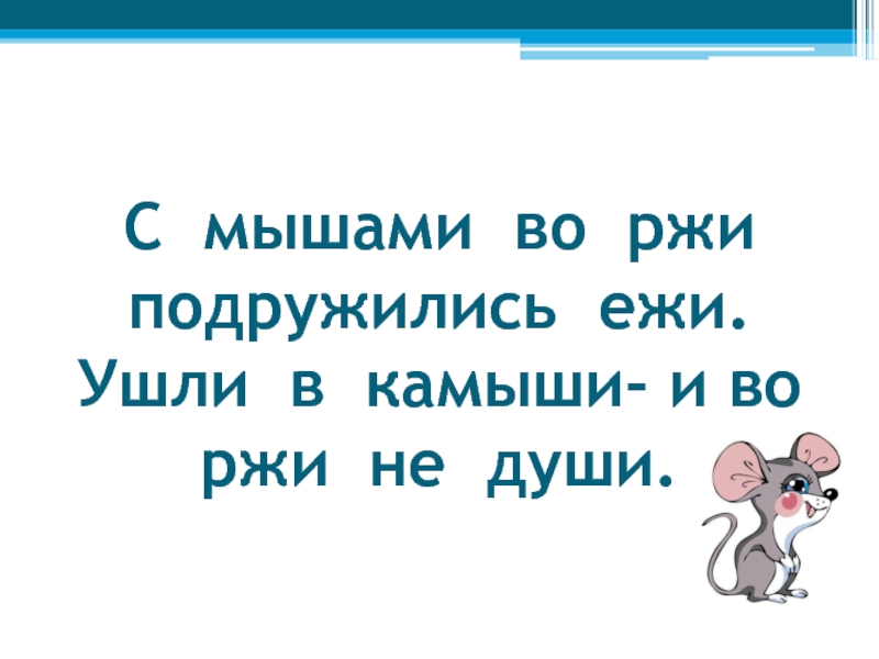 Слайд 20С мышами во ржи подружились ежи. Ушли в камыши- и во ржи
