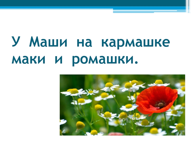 Слайд 30У Маши на кармашке маки и ромашки.