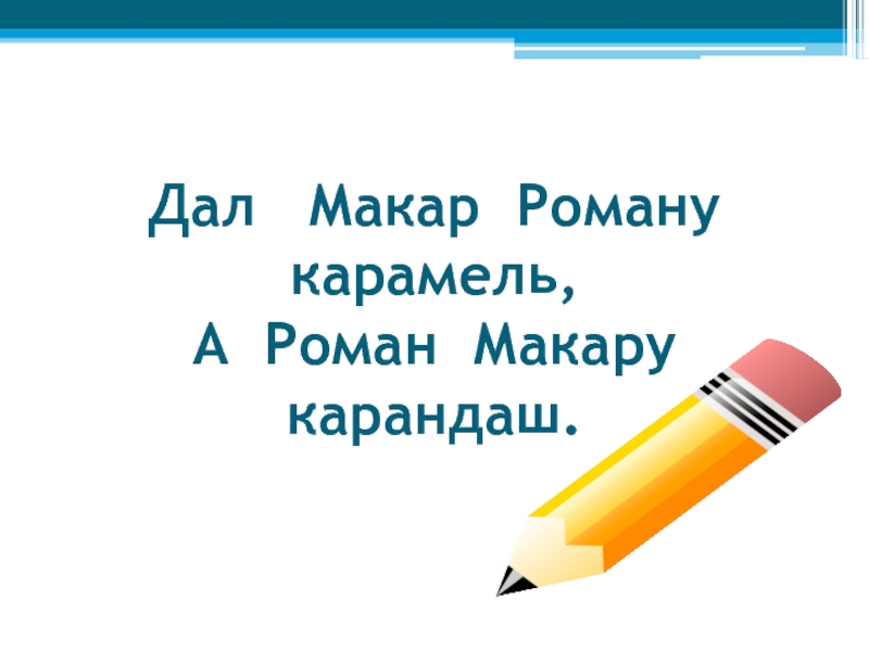 Слайд 12Дал Макар Роману карамель, А Роман Макару карандаш.