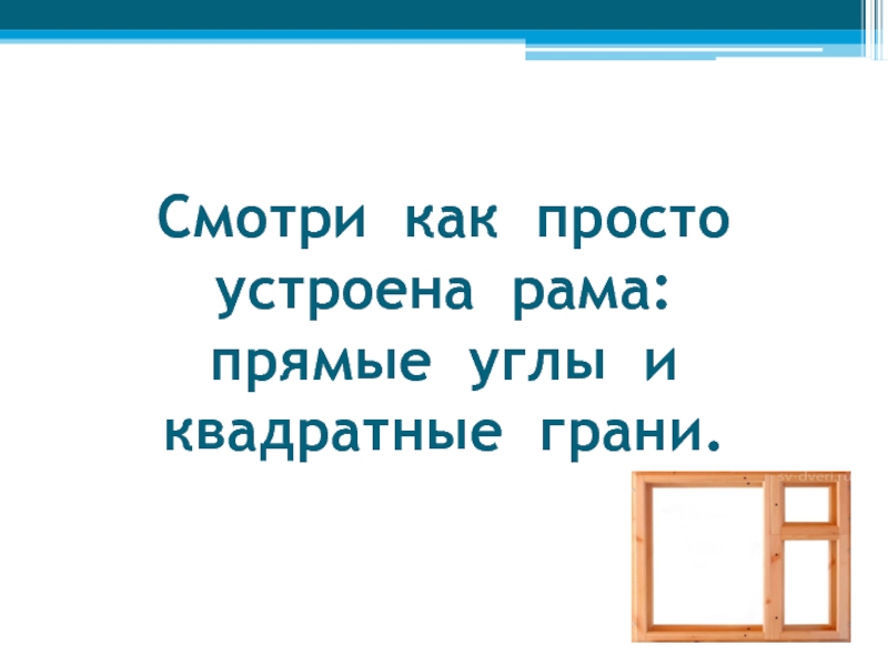 Слайд 15Смотри как просто устроена рама: прямые углы и квадратные грани.