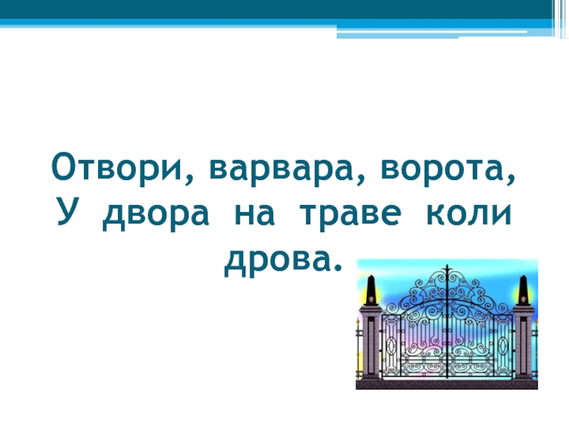 Слайд 8Отвори, варвара, ворота, У двора на траве коли дрова.
