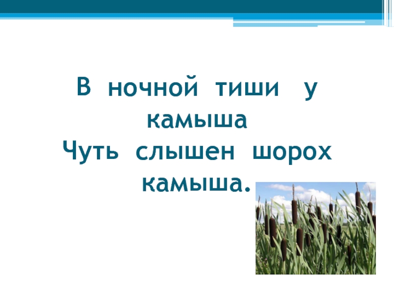 Слайд 27В ночной тиши у камыша Чуть слышен шорох камыша.
