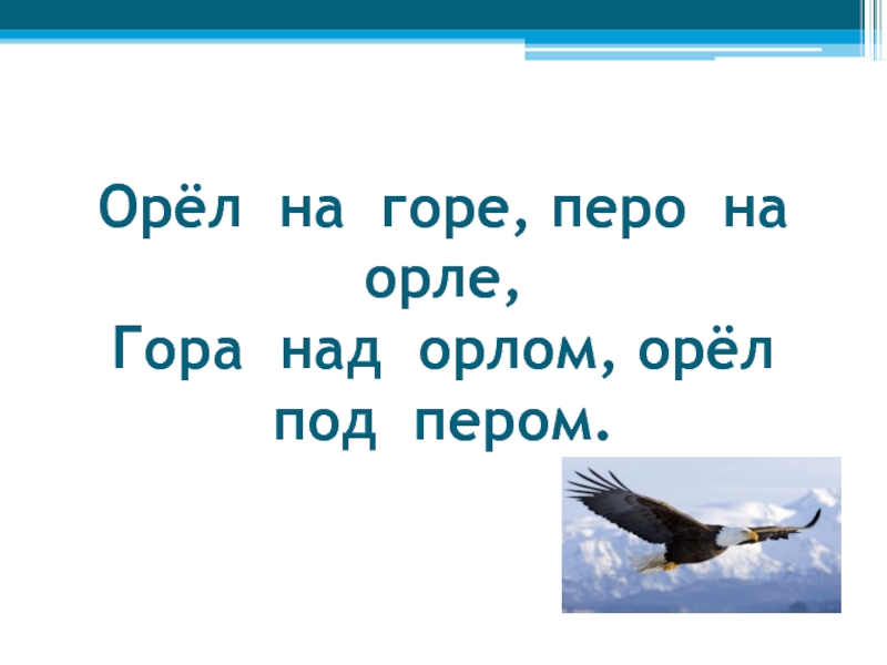 Слайд 17Орёл на горе, перо на орле, Гора над орлом, орёл под пером.
