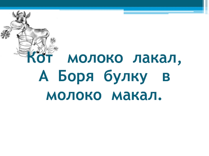 Слайд 6Кот молоко лакал, А Боря булку в молоко макал.