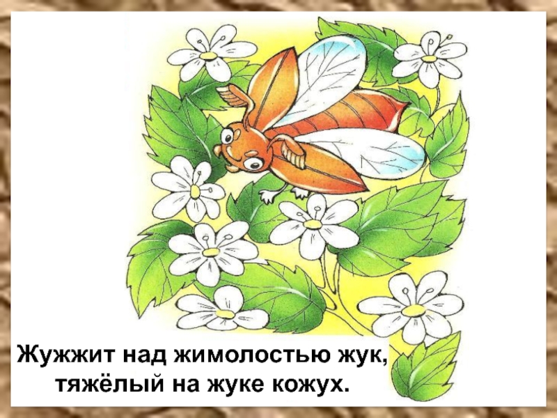 Слайд 38Жужжит над жимолостью жук,