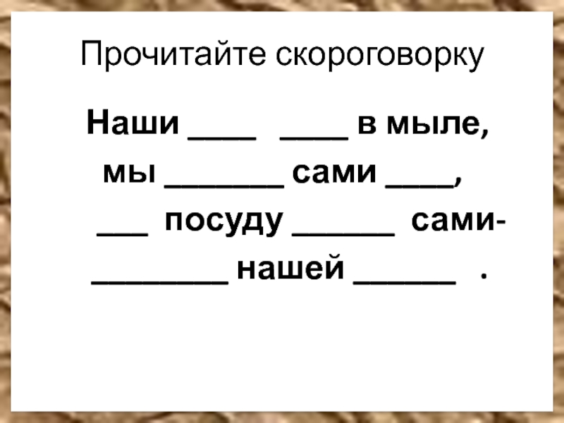 Прочитайте скороговорку Наши ____  ____ в мыле,мы _______ сами ____,   ___ посуду ______ сами-