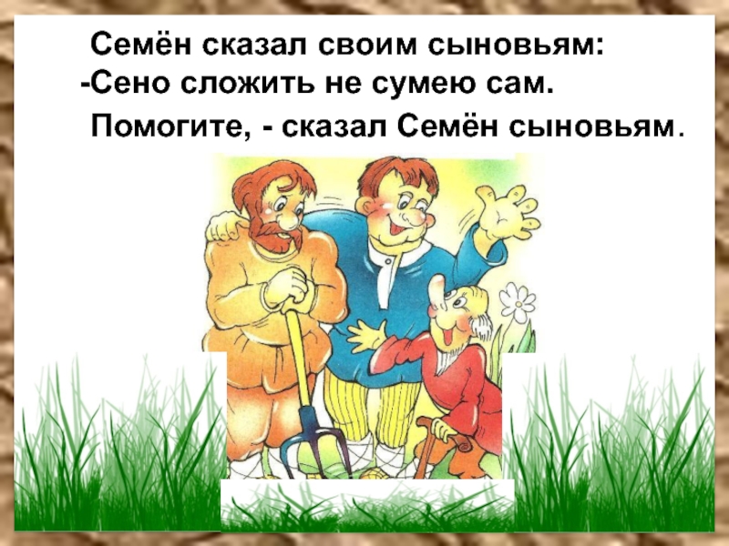 Семён сказал своим сыновьям:Сено сложить не сумею сам.Помогите, - сказал Семён сыновьям.