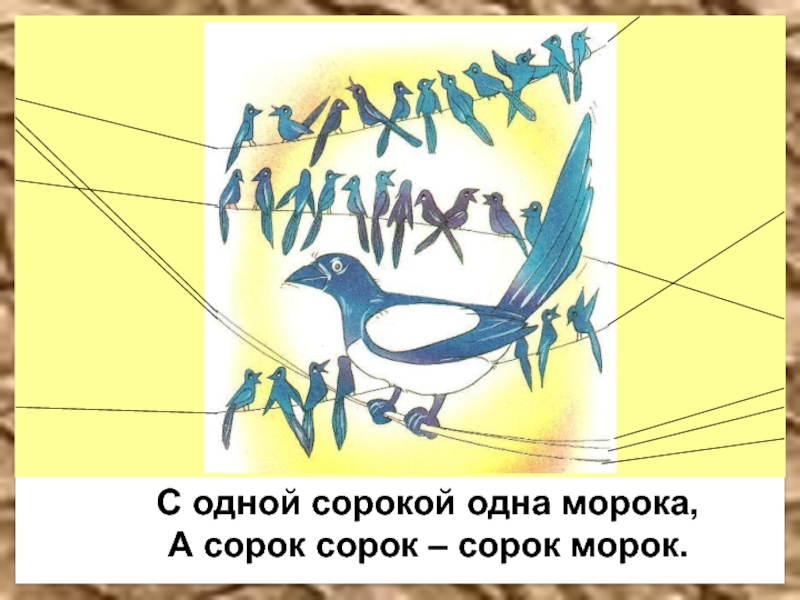 Слайд 26Три сороки-тараторки
