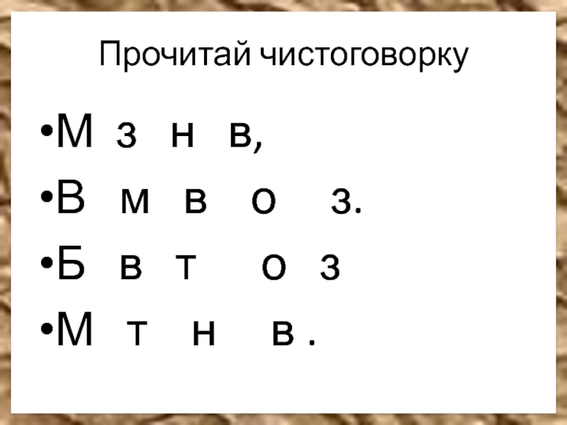 Прочитай чистоговоркуМ з  н  в,В  м  в  о   з.Б