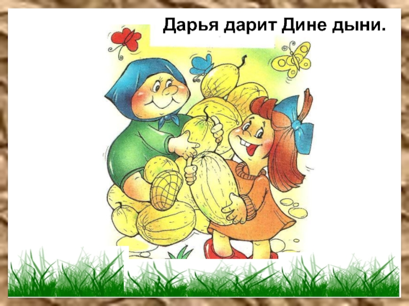 Слайд 31Дарья дарит Дине дыни.