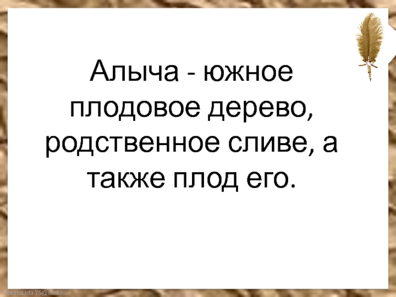 Слайд 8Алыча - южное плодовое дерево, родственное сливе, а также плод его.