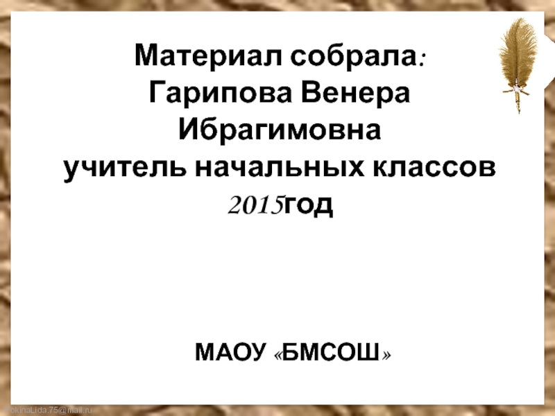 Материал собрала:Гарипова Венера Ибрагимовнаучитель начальных классов2015годМАОУ «БМСОШ»
