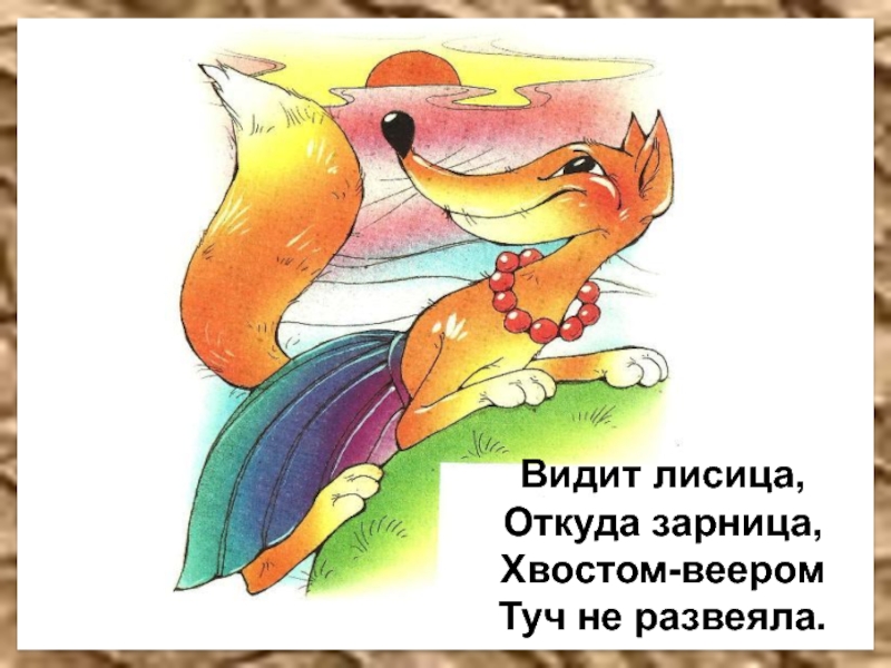 Видит лисица,Откуда зарница,Хвостом-вееромТуч не развеяла.
