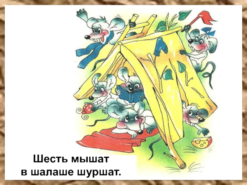 Шесть мышатв шалаше шуршат.