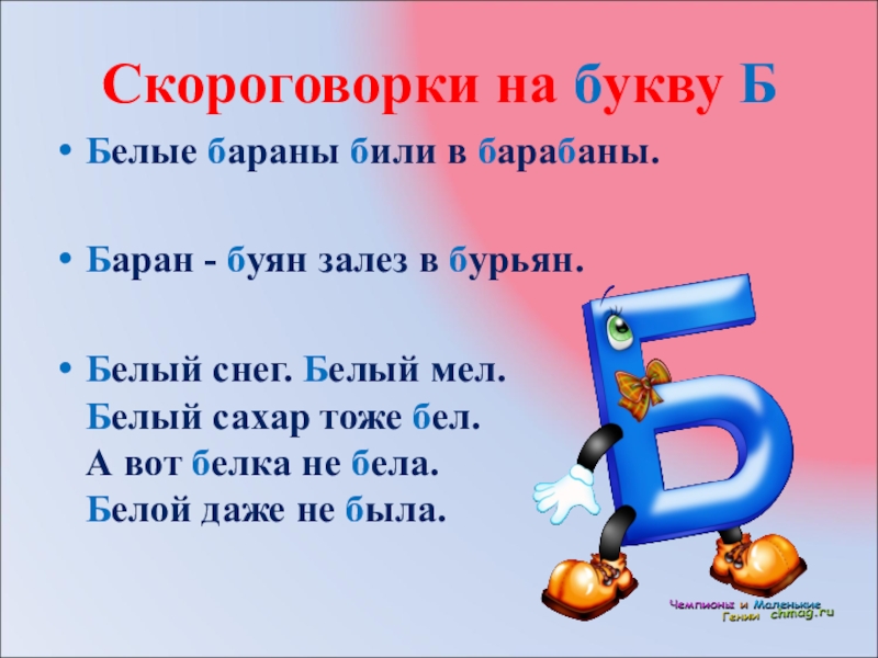 Слайд 2Скороговорки на букву Б