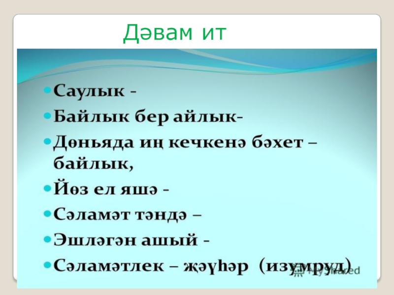 Сәламәтлек-зур байлык. Сәламәт булу-үзе бер бәхет. Сәламәт булу өчен, мин ... .