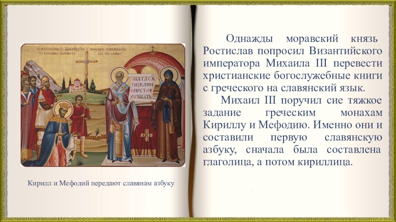 Кирилл и Мефодий передают славянам азбуку
