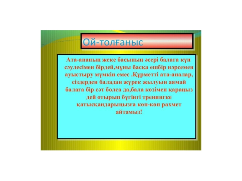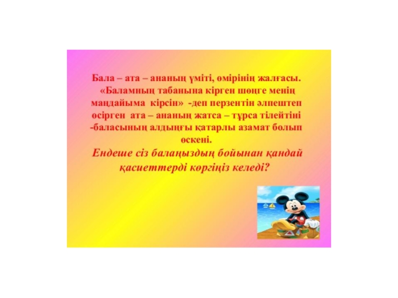 Презентация, доклад на тему Слайд Ананың алақаны балаға айдынды қоныс тренинг