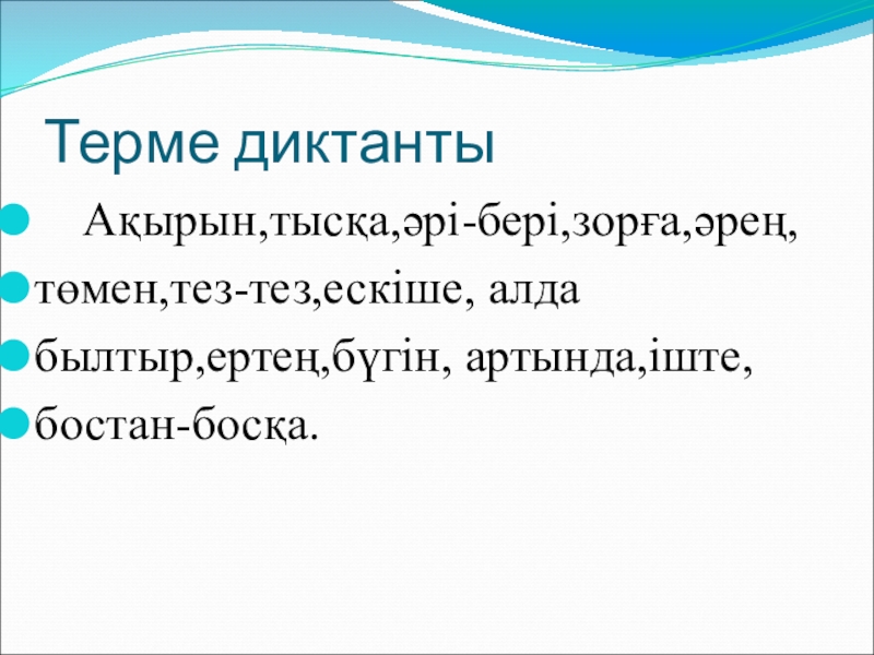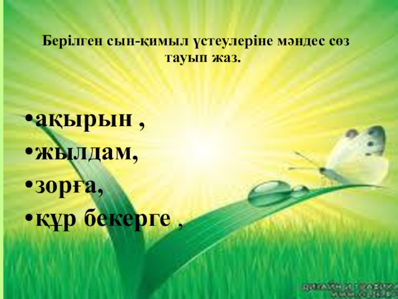 Берілген сын-қимыл үстеулеріне мәндес сөз тауып жаз.