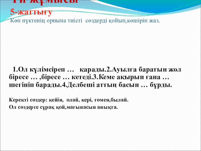 2.Кейін үстеуін бірде мекендік,бірде мезгілдік мағынада қолданып айт.