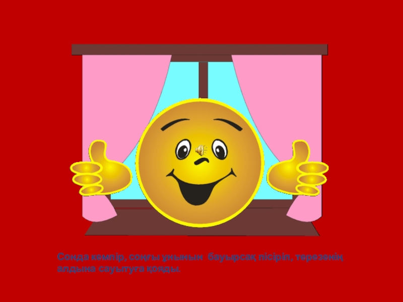 Слайд 3Сонда кемпір, соңғы ұнынын бауырсақ пісіріп, терезенің алдына сауытуға қояды.
