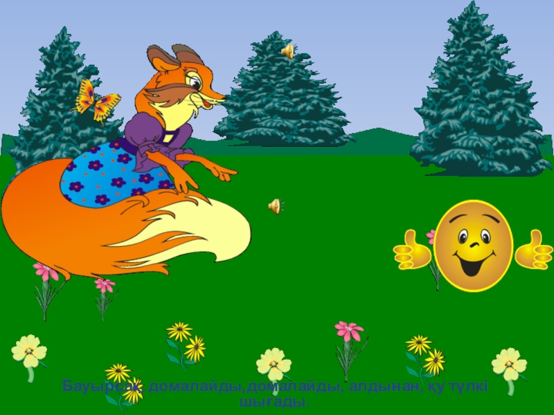 Бауырсақ, домалайды,домалайды, алдынан, қу түлкі шығады.
