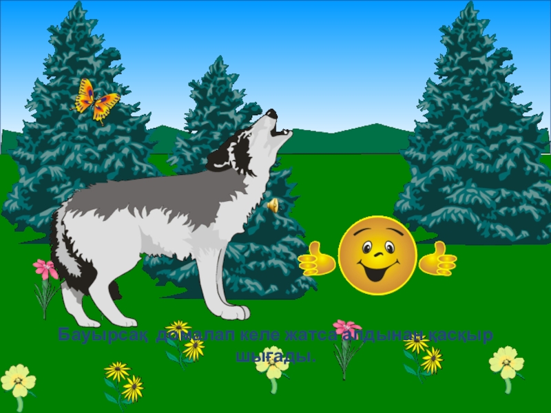 Бауырсақ домалап келе жатса алдынан қасқыр шығады.