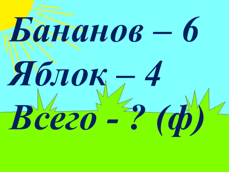Бананов – 6Яблок – 4Всего - ? (ф)