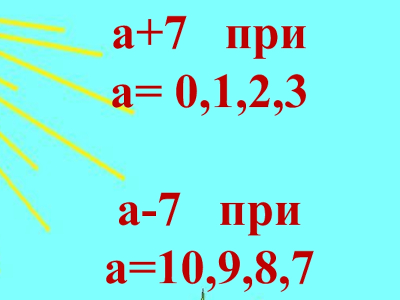 Презентация, доклад на тему Слайд к открытому уроку: Выражения а + 7, а - 7