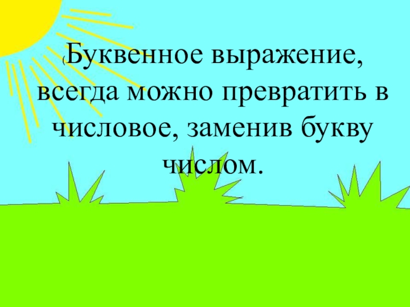 Слайд 30(Буквенное выражение, всегда можно превратить в числовое, заменив букву числом.