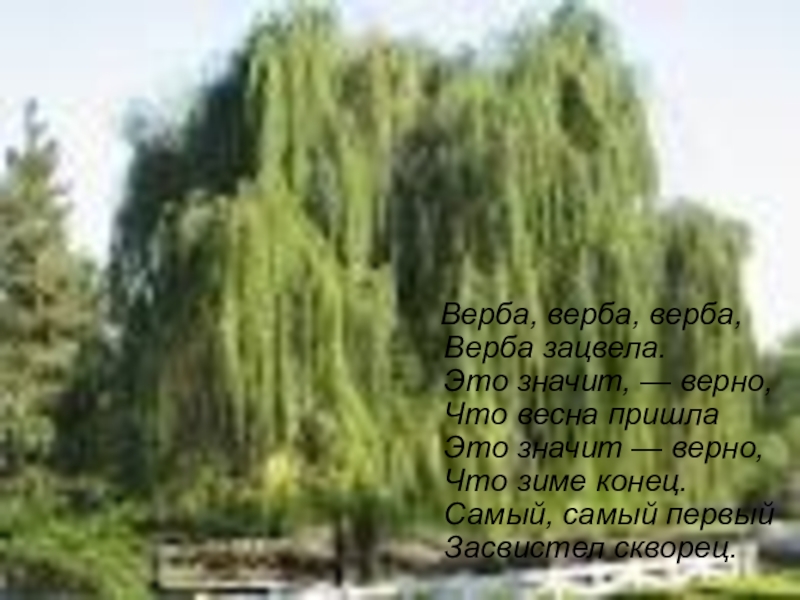 Слайд 5 Верба, верба, верба, Верба зацвела. Это значит, — верно, Что весна пришла Это