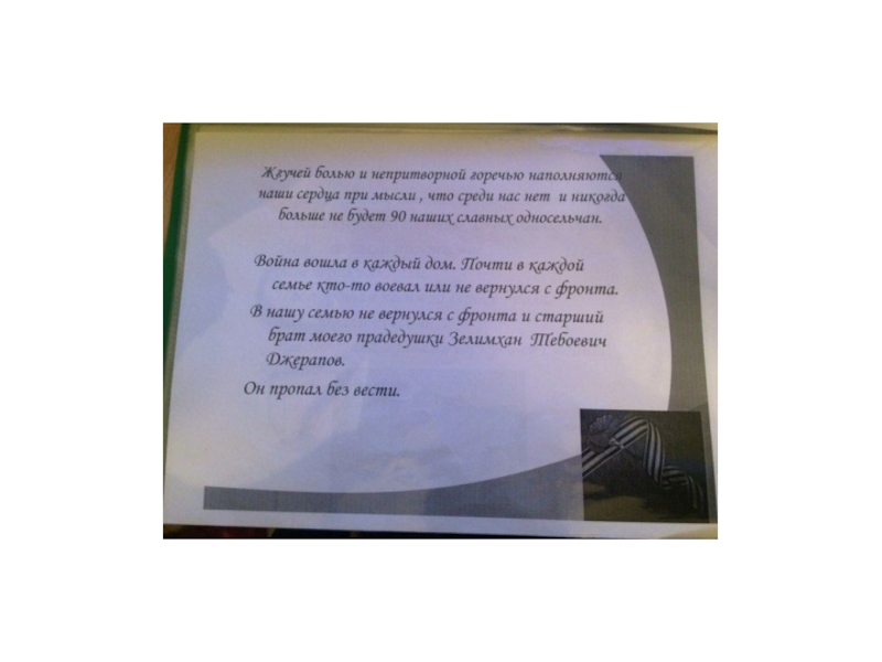 Презентация, доклад на тему След войны в моей семье.