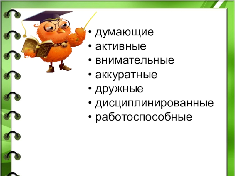 думающие активные внимательные аккуратные дружные дисциплинированные работоспособные