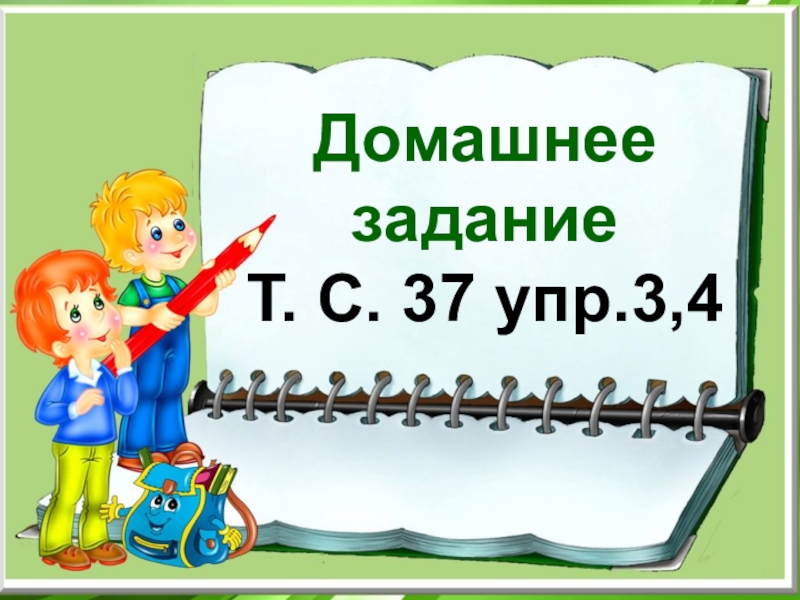 Урок русского языка в 4 классе ОС «Школа 2100»Домашнее заданиеТ. С. 37 упр.3,4
