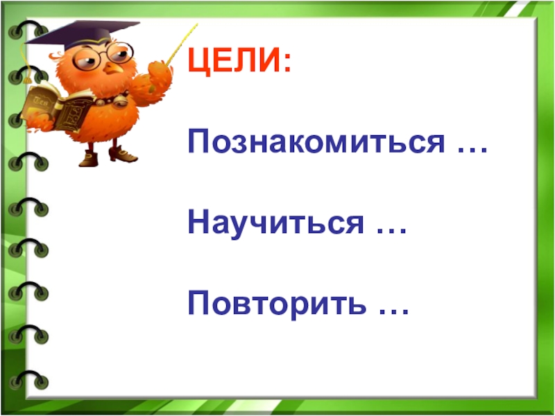 Слайд 18ЦЕЛИ: Познакомиться … Научиться … Повторить …