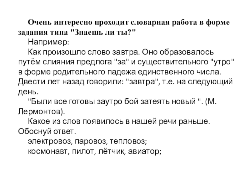 Слайд 19Очень интересно проходит словарная работа в форме задания типа "Знаешь ли