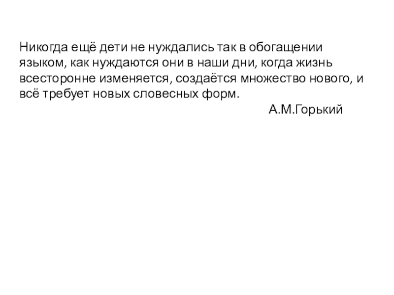 Слайд 2Никогда ещё дети не нуждались так в обогащении языком, как нуждаются