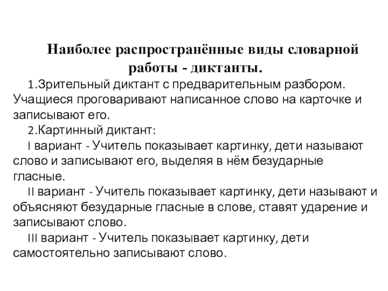 Слайд 6Наиболее распространённые виды словарной работы - диктанты.