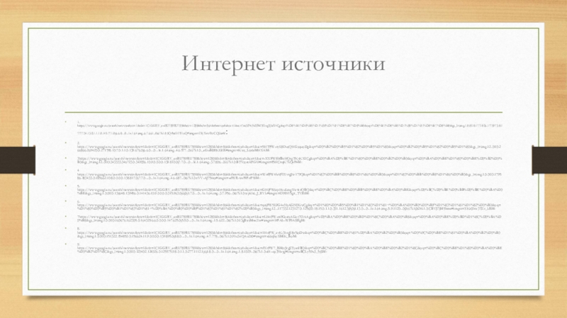 Интернет источники 1. https://www.google.ru/search?newwindow=1&rlz=1C1GGRV_enRU789RU789&biw=1280&bih=864&tbm=isch&sa=1&ei=7m3FW9r2FMTOrgTjlaX4Cg&q=%D0%B1%D0%B5%D1%80%D1%91%D0%B7%D0%B0&oq=%D0%B1%D0%B5%D1%80%D1%91%D0%B7%D0%B0&gs_l=img.1.0.0l10.1771026.1775973.0.1777734.13.8.1.1.1.0.145.771.0j6.6.0....0...1c.1.64.img..6.7.661...0i67k1.0.5QfbsOI7HoQ#imgrc=IXyXcwRwCQS6eM:2. https://www.google.ru/search?newwindow=1&rlz=1C1GGRV_enRU789RU789&biw=1280&bih=864&tbm=isch&sa=1&ei=5HTFW-nyL8OusQHGsquoDg&q=%D0%B2%D0%B5%D1%82%D0%B5%D1%80&oq=%D0%B2%D0%B5%D1%82%D0%B5%D1%80&gs_l=img.12..0l10.266866.269420.0.271798.10.7.0.1.1.0.139.676.0j6.6.0....0...1c.1.64.img..4.6.577...0i67k1.0._eGuB8EKGIE#imgrc=Kws_L6rlaMHXAM:3https://www.google.ru/search?newwindow=1&rlz=1C1GGRV_enRU789RU789&biw=1280&bih=864&tbm=isch&sa=1&ei=-XXFW8bfBcHQrgTKyKXICg&q=%D0%BA%D0%BE%D1%80%D0%BE%D0%B2%D0%B0&oq=%D0%BA%D0%BE%D1%80%D0%BE%D0%B2%D0%B0&gs_l=img.12..0l10.343333.346723.0.349036.10.9.0.0.0.0.139.810.0j7.7.0....0...1c.1.64.img..3.7.806...0i67k1.0.BTYssatAPGU#imgrc=f5HCzqK7kQaP4M:4 https://www.google.ru/search?newwindow=1&rlz=1C1GGRV_enRU789RU789&biw=1280&bih=864&tbm=isch&sa=1&ei=WnfFW4bAFIXvrgSw179Q&q=%D1%83%D0%BB%D0%B8%D1%86%D0%B0&oq=%D1%83%D0%BB%D0%B8%D1%86%D0%B0&gs_l=img.1.0.0l10.179586.183433.0.185662.10.8.0.0.0.0.138.817.0j7.7.0....0...1c.1.64.img..4.6.687...0i67k1.0.zYV-AJ75tco#imgrc=edWR-waPIPnPWM:5. https://www.google.ru/search?newwindow=1&rlz=1C1GGRV_enRU789RU789&biw=1280&bih=864&tbm=isch&sa=1&ei=GHjFW6rpHsuLmgXw4rzQBQ&q=%D0%BC%D0%BE%D0%BB%D0%BE%D0%BA%D0%BE&oq=%D0%BC%D0%BE%D0%BB%D0%BE%D0%BA%D0%BE&gs_l=img.1.0.0l10.136648.139456.0.141436.10.9.0.0.0.0.315.963.0j6j0j1.7.0....0...1c.1.64.img..3.7.956...0i67k1.0.wpkh6_J_EVk#imgrc=O9IbY5gz_TVEtM:6. https://www.google.ru/search?newwindow=1&rlz=1C1GGRV_enRU789RU789&biw=1280&bih=864&tbm=isch&sa=1&ei=qnjFW5L9G4aNsAGN0LiwCg&q=%D1%80%D0%B5%D0%B1%D1%83%D1%81+%D0%BA%D0%B0%D0%BF%D1%83%D1%81%D1%82%D0%B0&oq=%D1%80%D0%B5%D0%B1%D1%83%D1%81+%D0%BA%D0%B0%D0%BF%D1%83%D1%81%D1%82%D0%B0&gs_l=img.12...117332.123127.0.125630.18.15.0.1.1.0.331.1612.3j9j0j1.13.0....0...1c.1.64.img..5.9.1120...0j0i67k1j0i24k1.0.CBVS7jM5bmc#imgrc=XKzShw3TZr_kRM: 7https://www.google.ru/search?newwindow=1&rlz=1C1GGRV_enRU789RU789&biw=1280&bih=864&tbm=isch&sa=1&ei=LHnFW-m9GsatsAGoy7OAAg&q=%D0%BA%D0%BE%D0%BD%D1%8C%D0%BA%D0%B8&oq=%D0%BA%D0%BE%D0%BD%D1%8C%D0%BA%D0%B8&gs_l=img.1.0.0l10.160676.162305.0.164329.6.6.0.0.0.0.147.625.0j5.5.0....0...1c.1.64.img..1.5.622...0i67k1.0.I3gRwiMneZw#imgrc=HPAI--WF9A8EgM: 8. https://www.google.ru/search?newwindow=1&rlz=1C1GGRV_enRU789RU789&biw=1280&bih=864&tbm=isch&sa=1&ei=1HnFW_avK-3hrgS8n5ioDw&q=%D0%BC%D0%BE%D1%81%D0%BA%D0%B2%D0%B0&oq=%D0%9C%D0%BE%D1%81%D0%BA%D0%B2%D0%B0&gs_l=img.1.0.0l10.151322.154850.0.156624.11.9.0.0.0.0.139.895.0j8.8.0....0...1c.1.64.img..4.7.778...0i67k1.0.91u3nQAu2z0#imgrc=e66qboXMlK_BoM:9. https://www.google.ru/search?newwindow=1&rlz=1C1GGRV_enRU789RU789&biw=1280&bih=864&tbm=isch&sa=1&ei=dXrFW7_RMsvJrgSTsanIBQ&q=%D0%BC%D0%BE%D1%80%D0%BA%D0%BE%D0%B2%D1%8C&oq=%D0%BC%D0%BE%D1%80%D0%BA%D0%BE%D0%B2%D1%8C&gs_l=img.1.0.0l10.120402.124026.0.125575.9.8.0.1.1.0.277.1112.1j6j1.8.0....0...1c.1.64.img..1.8.1029...0i67k1.0.aH--qs3Nayg#imgrc=uBCLy59u3_5ySM: