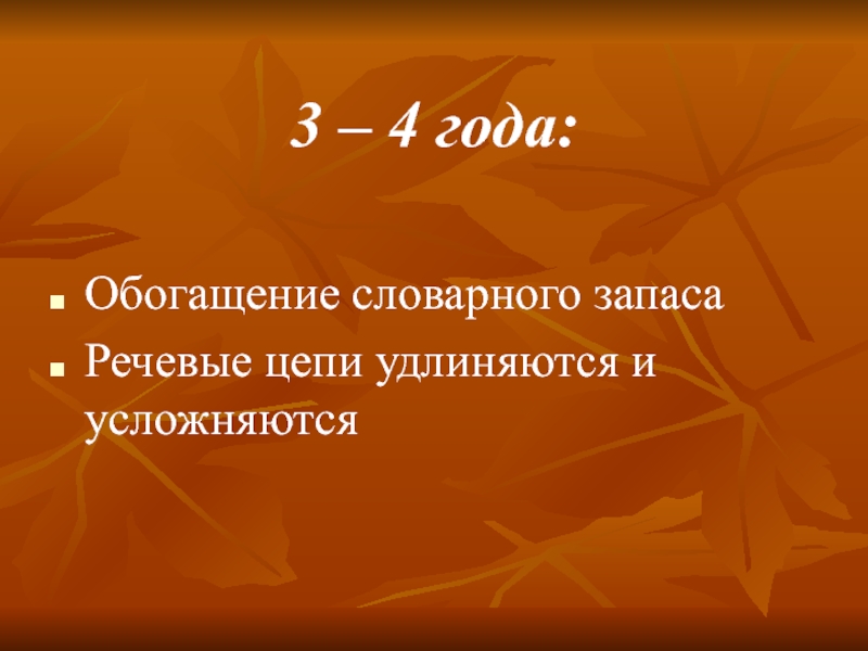 3 – 4 года: Обогащение словарного запасаРечевые цепи удлиняются и усложняются