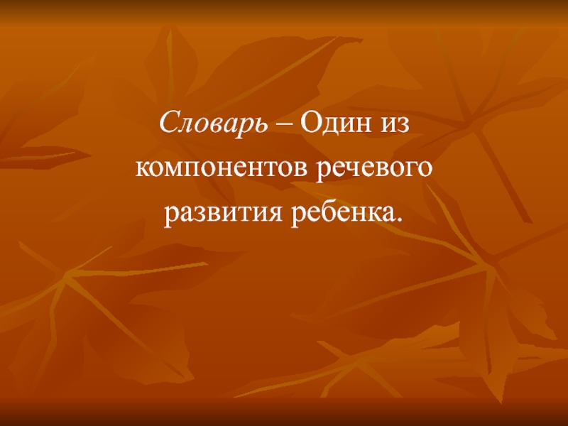 Словарь – Один из компонентов речевого развития ребенка.