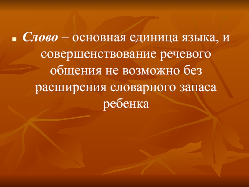 Слово – основная единица языка, и совершенствование речевого общения не возможно