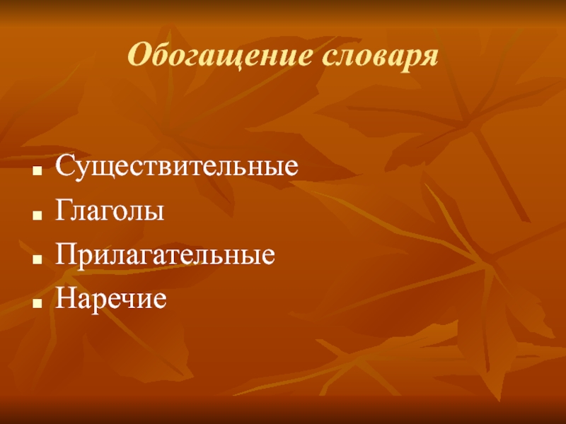 Обогащение словаряСуществительныеГлаголыПрилагательныеНаречие