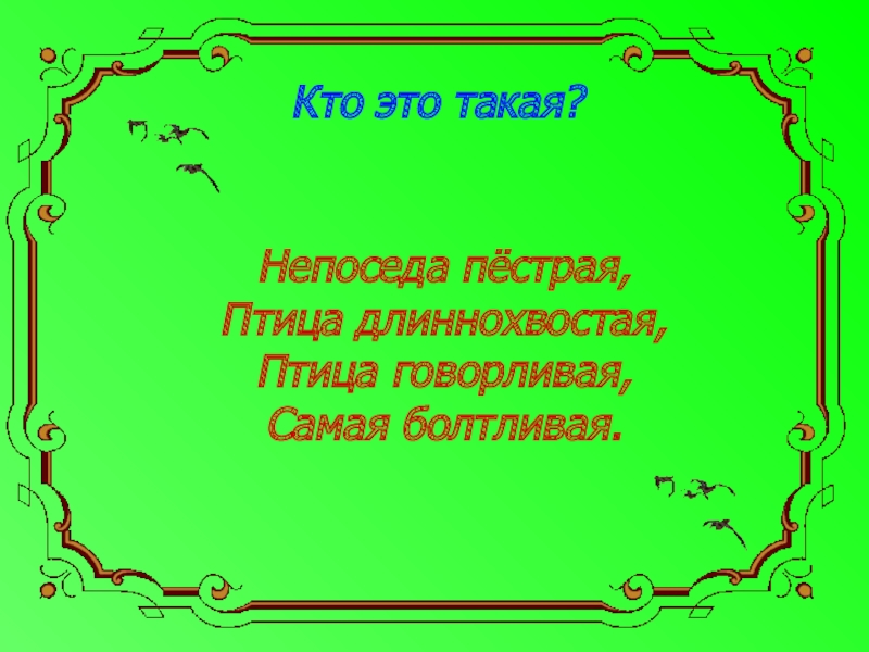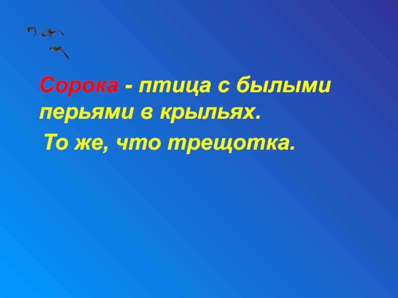 Слайд 23 Сорока - птица с былыми перьями в крыльях.