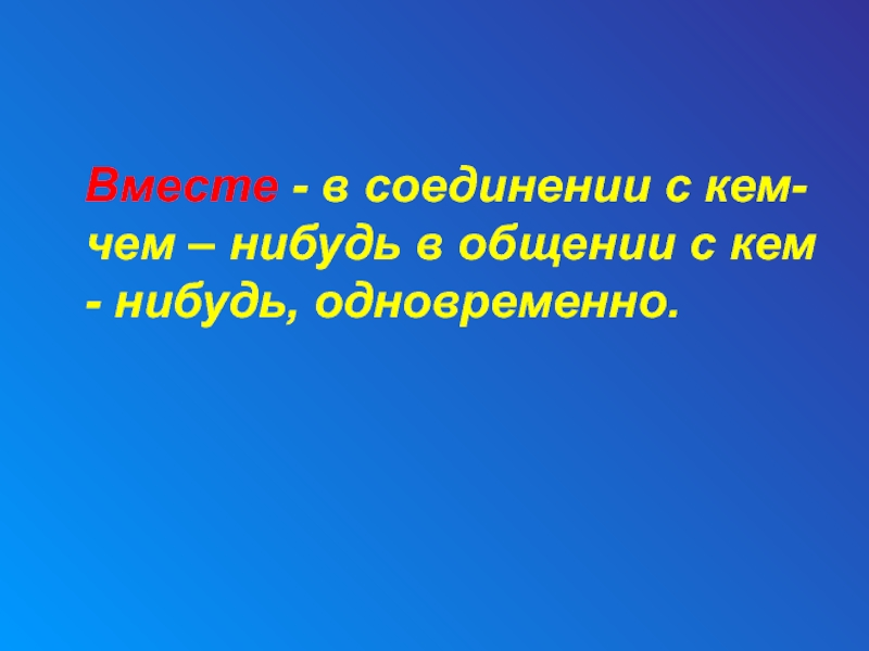 Слайд 634 Вместе - в соединении с кем- чем – нибудь
