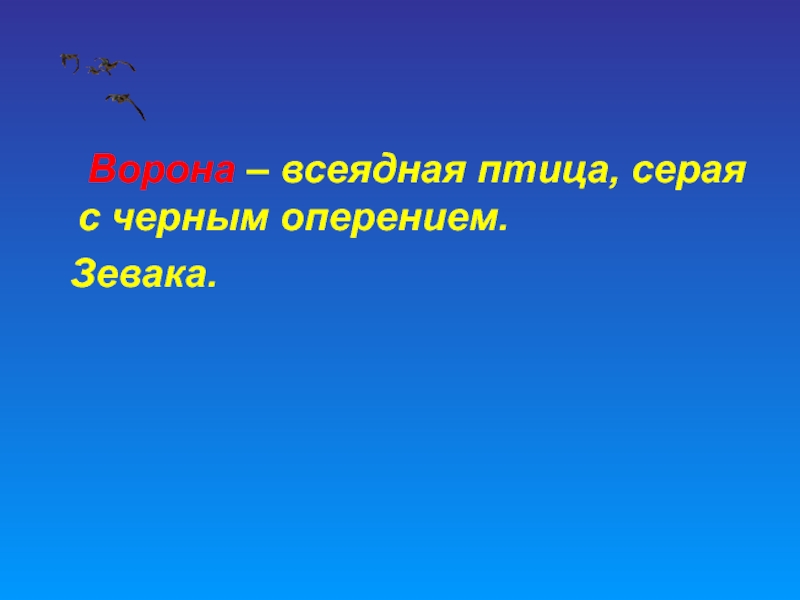 Слайд 10 Ворона – всеядная птица, серая с черным оперением.