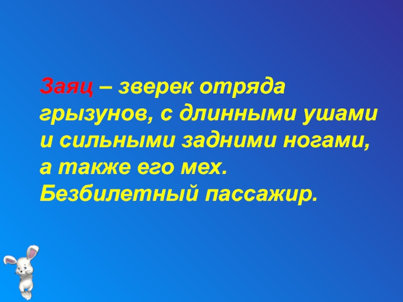 Слайд 32 Заяц – зверек отряда грызунов, с длинными ушами и